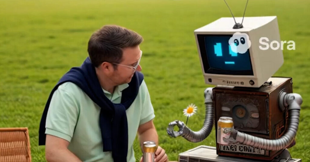 Un usuario de Sora creó un video en el que se representa a un joven Roose en una comedia romántica ambientada en Nueva York, donde tiene una cita con un robot hecho de piezas encontradas y un monitor CRT en Central Park. Este ejemplo ilustra cómo la tecnología avanza rápidamente y cómo se están redefiniendo las interacciones humanas a través de la inteligencia artificial.