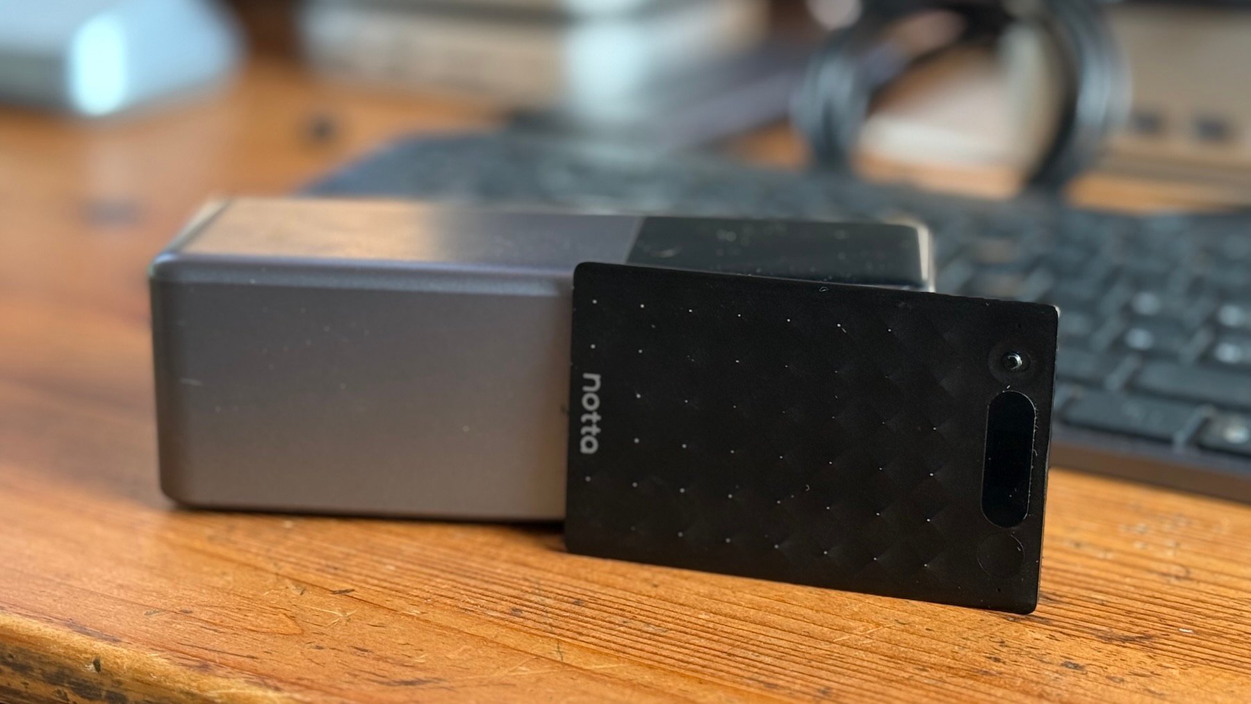 El diseño del Notta Memo también merece mención. Su estructura compacta y metálica, junto con una funda magnética que permite sujetarlo al móvil, lo convierte en un dispositivo práctico y fácil de transportar. La pantalla pequeña muestra información esencial sobre el modo de grabación y la batería, lo que añade un nivel de comodidad al usuario.